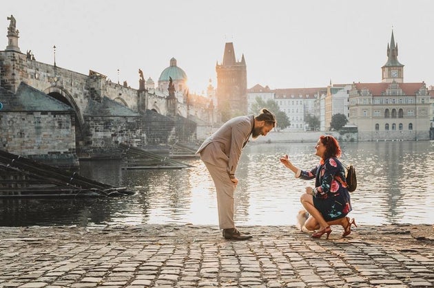 And that certainly was the case when Sonja Lishchynki, the woman behindMontecristo Travels, popped the question to her longtime boyfriend Stefan Dumas at sunrise on Sept. 14 at the Charles Bridge in Prague.